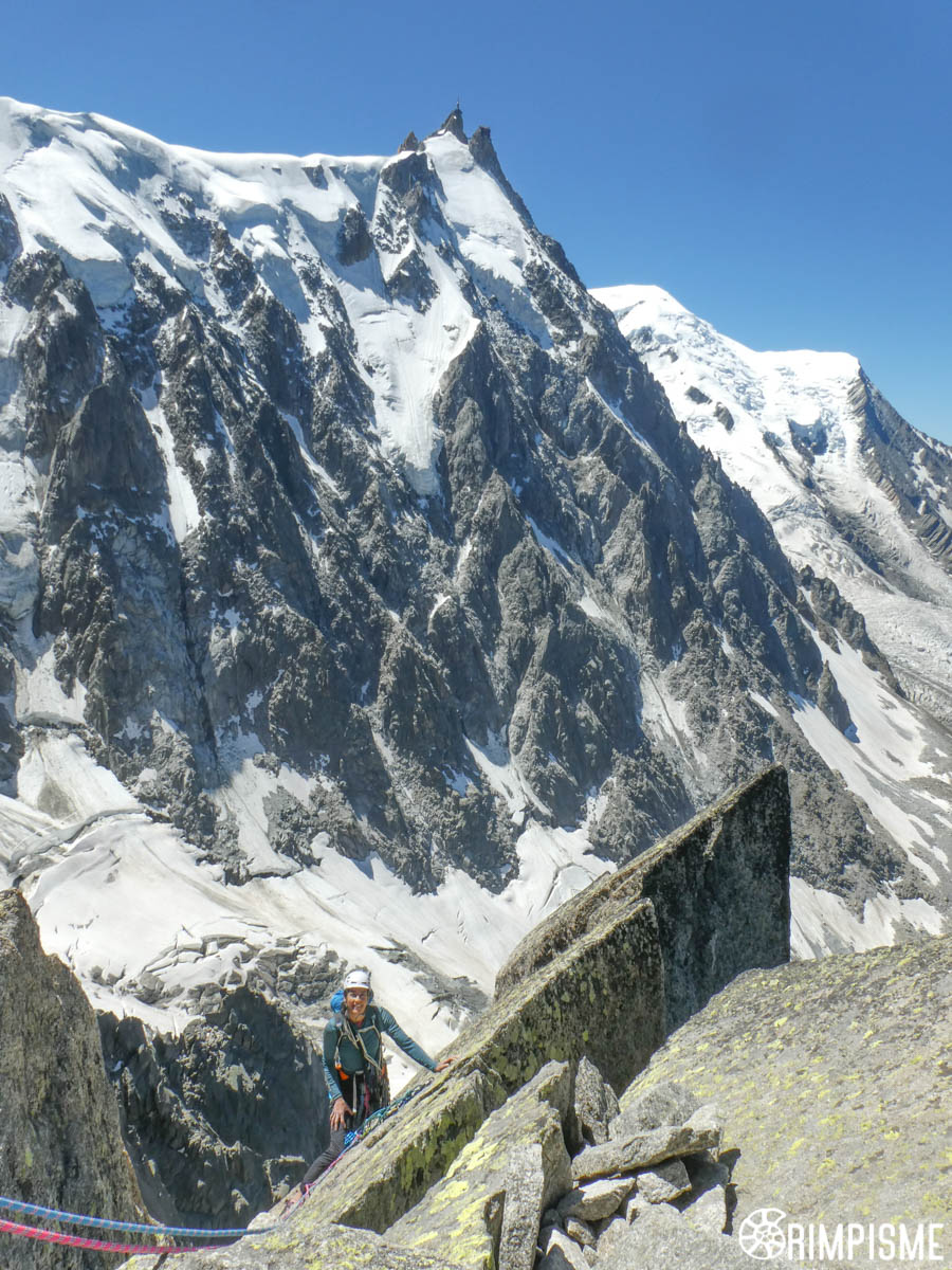 Quatre ans plus tard, me voici de retour à l’Aiguille du Peigne, après l’avoir varappée par « l’Arête des Papillons » et la voie normale. Loin d’être une antécime de l’Aiguille des Pèlerins ou du Plan, cette belle montagne se suffit à elle-même par la variété de ces versants, de ses orientations et la qualité de son granit. De plus on la voit bien de la vallée (de Chamonix), ce qui fait remonter les bons souvenirs par les fréquents coups d’œil qu’on peut lui donner tout au long de l’année, depuis le balcon ou en marchant dans la rue.