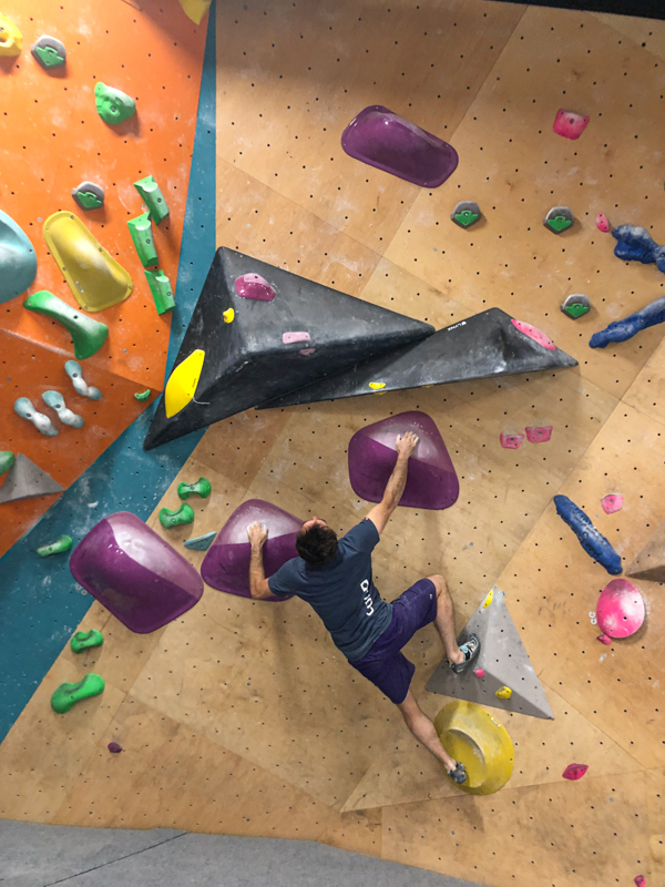Aujourd’hui, nous avons travaillé sur sa visualisation et la concentration pré-performance (aller au bout de l’effort), sur des ajustements techniques (ne pas abuser des baffes en drapeau !), et réglé son protocole de travail de la force doigt au Tindeq Progressor. Tout cela devrait l’aider pour son objectif de 8a+ bloc avant la fin de l’année. Surtout, que du plaisir, et c’est indispensable sur un chemin aussi tortueux. On a même fait de la menuiserie…