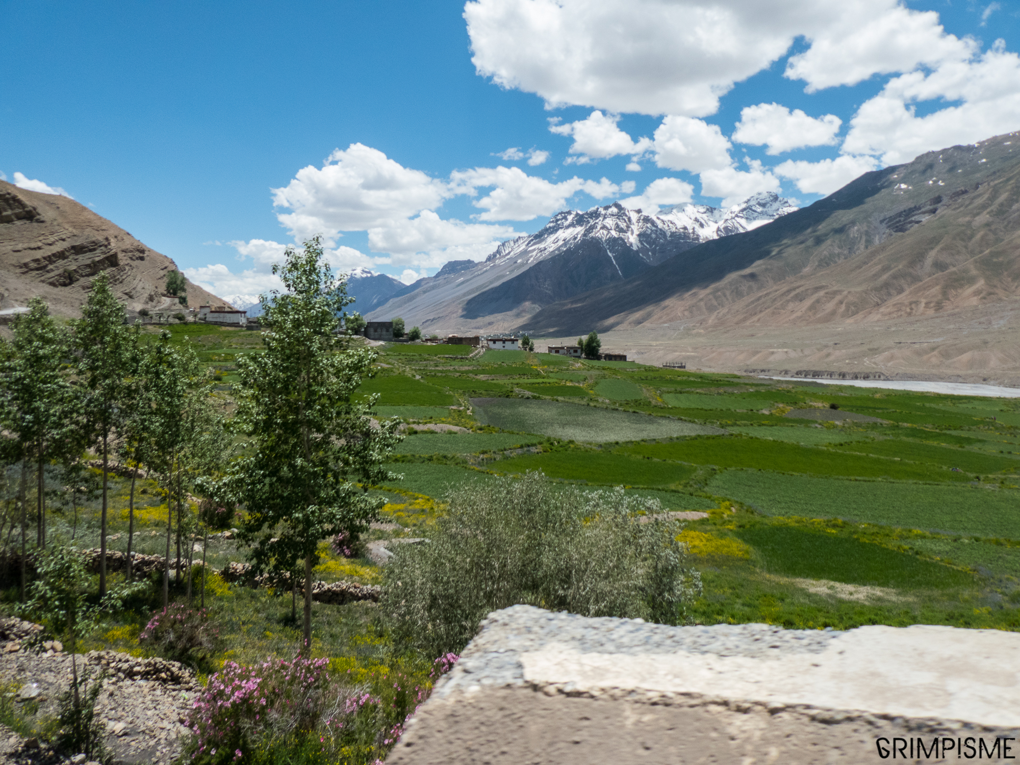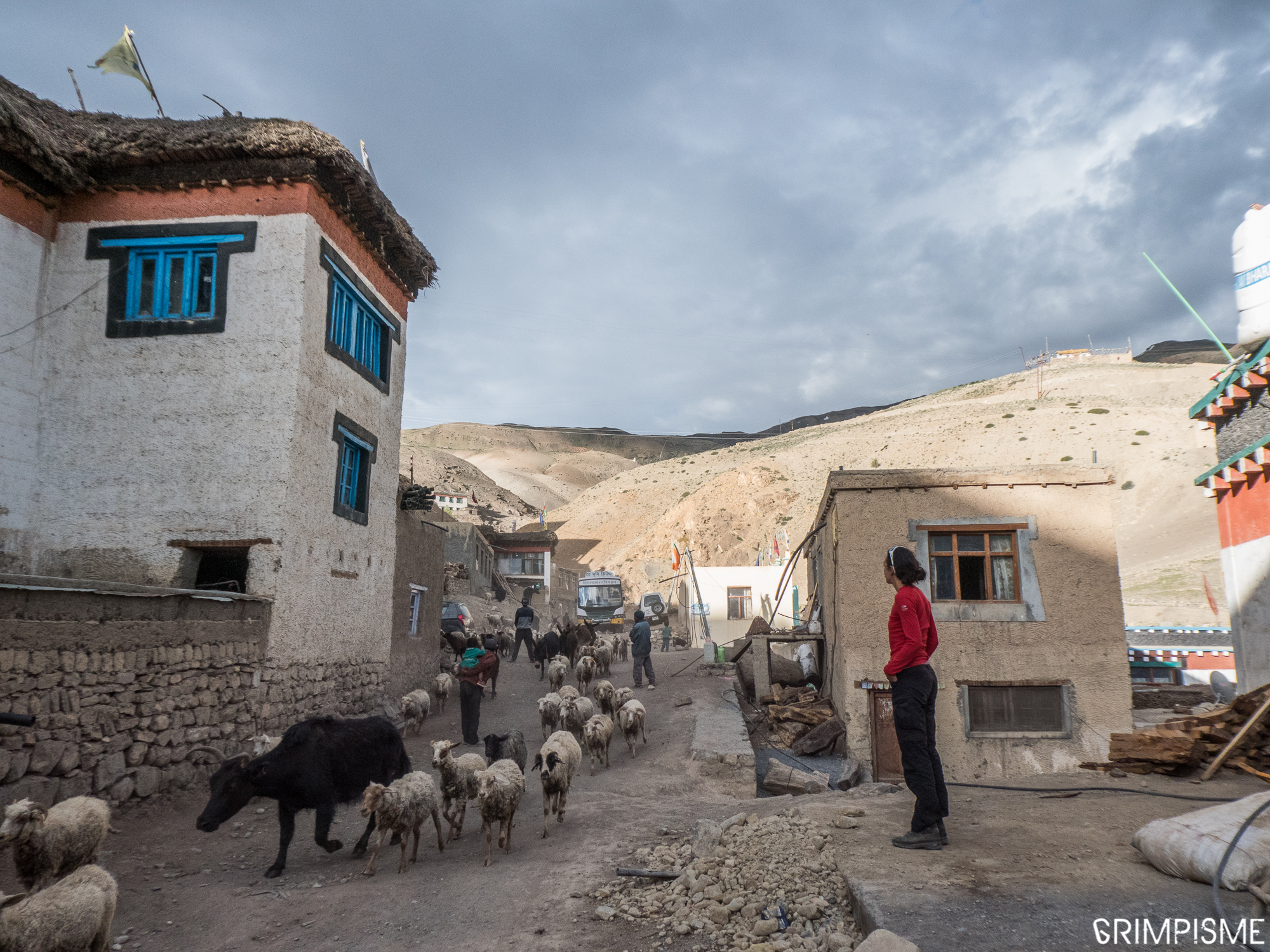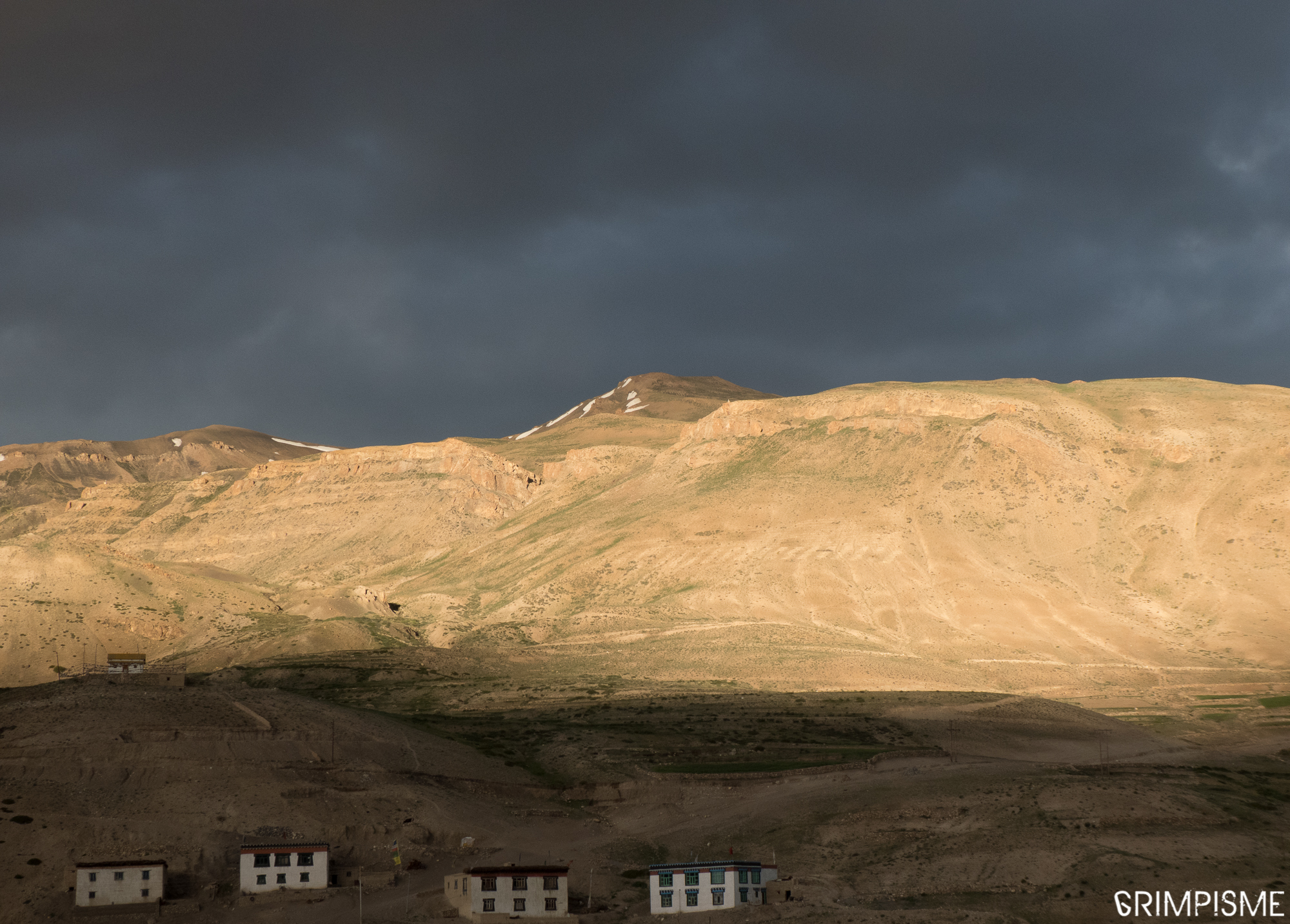 Arrivés à Mudh après avoir traversé le Pin Parvati Pass, nous voici désormais dans la vallée du Spiti. En 3 ou 4 heures de bus nous atteignons Kaza, le centre administratif. Sale (malgré les initiatives locales de lutte contre le plastique), bruyante et plutôt touristique, cette mini ville est néanmoins attachante par l’énergie et le brassage ethnique qui la caractérisent. Ce n’est pas l’ambiance froide qui nous a accueillis à Mudh et que nous allons retrouver à Kibber.