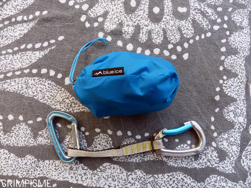 Pour terminer, le format de ce baudrier demande un minimum d’habitude pour le démêler et l’enfiler rapidement. Contrairement à ce qui est montré sur la vidéo, je préfère clipper en premier les boucles plastiques avant de mettre en place la ceinture.